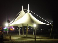 張拉膜是用于膜結構中的膜材,是一種具有高強度、柔韌性好的薄膜材料;是由織物基材(玻璃纖維、聚酯長絲)和涂層(PTFE、硅酮、PVC)復合而成的涂層織物。其主要材料就是高強度織物纖維。